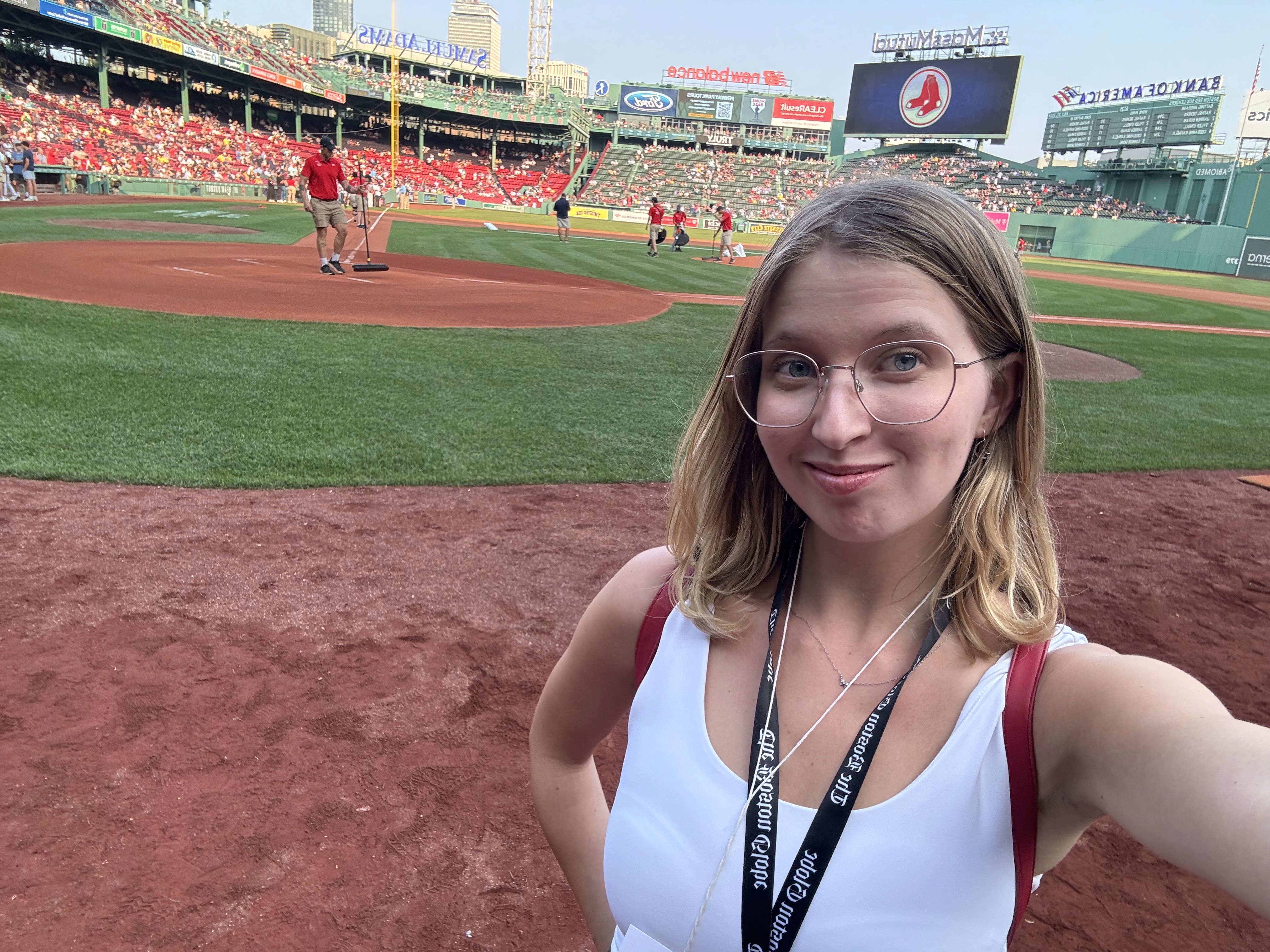 Capturing content for the Globe on the field at Fenway Park.